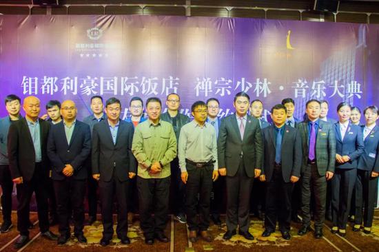 钼都利豪国际饭店总经理马永恒、运营总监王忠杰、市场收益管理部经理许岳锋等十余人,《禅宗少林·音乐大典》总经理韩刚、总经理助理、营销总监毛荣军、营销副总监蒋志伟等一行十人,以及河南旅游研究院副院长、中原旅游大咖联盟首席执行官、大河报资深记者魏国剑先生共20余人参加了此次友好合作签约仪式。