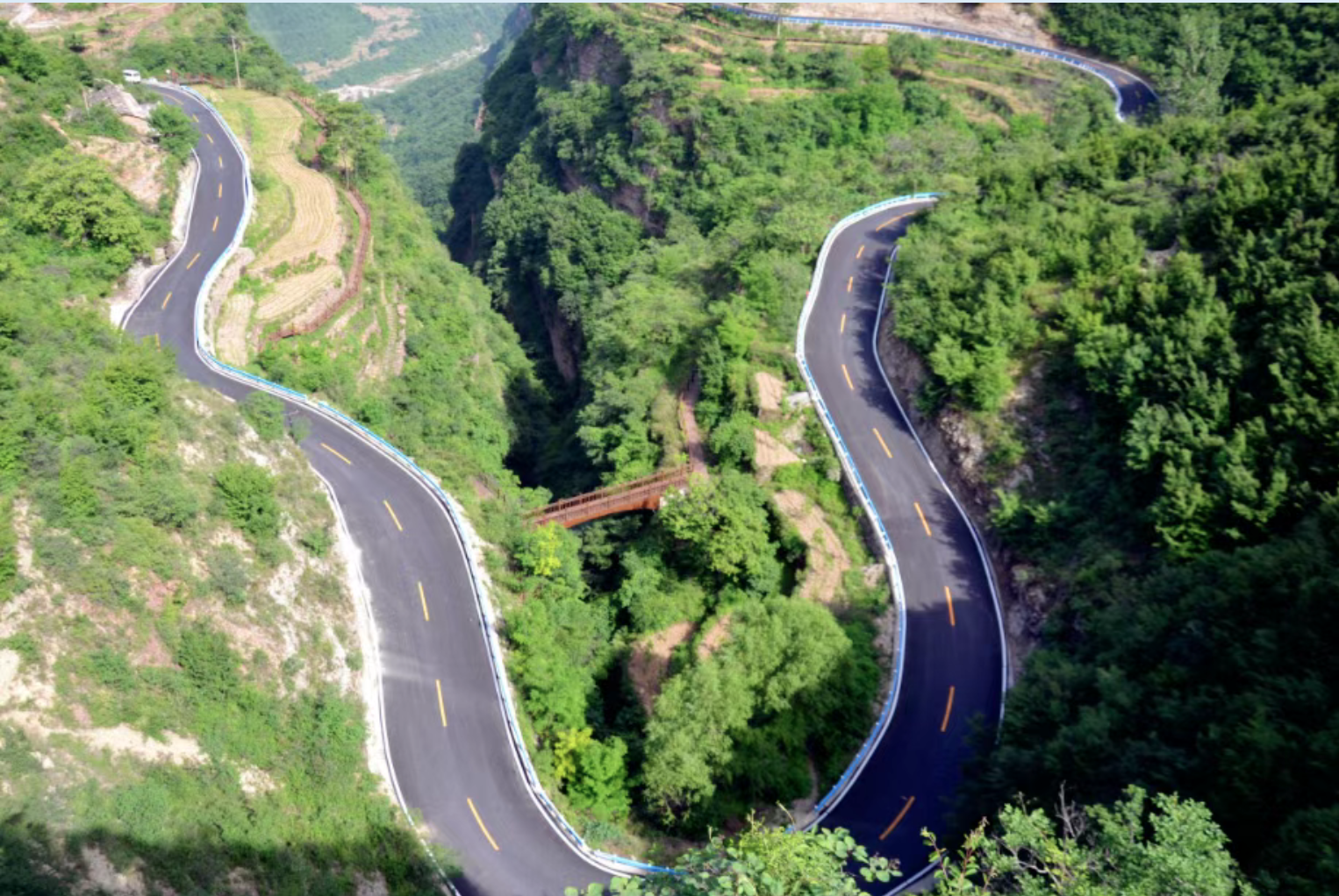 “太行天路”景区位于太行山之巅,北起桃花谷景区,南至仙霞谷景区,全长约30km,既是景区环线游览道路的重要组成部分,更是俯瞰太行山壮美风光的绝佳位置。